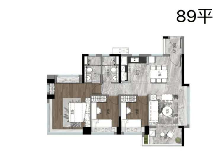 72 平方米三房两卫:总价 260 万起,门槛低,适合年轻家庭上车。