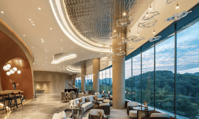 项目坐落于91万平方米浔峰山生态公园与35万平方米自然湖泊之间,自建约3万平方米私家社区山体公园。得益于优越生态,区域温度比周边低2℃,居住舒适度极高。社区内部采用“一廊三轴”园林景观设计,配备空中无边际泳池及高端会所。