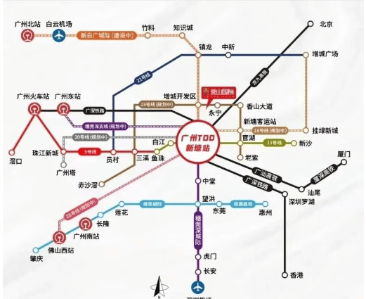 项目紧邻新白广城际永宁南站,未来可快速连接新塘、白云机场等关键节点,对通勤和城市流动性非常友好。