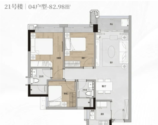 布局紧凑但功能齐全,适合首次置业或小家庭,性价比突出。