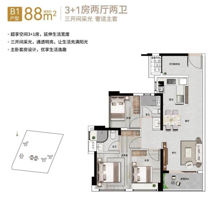 户型设计:76㎡“2+1”房做到三开间朝南,主卧带飘窗,空间利用率超90%;89㎡“3+1”房可实现四房功能,满足二胎家庭需求;140㎡五房采用“横厅+双主套”设计,适合三代同堂。