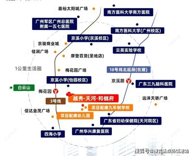 地段:天河CBD北拓核心区,3公里直达珠江新城,直线距离地铁3号线梅花园站仅600米(车程8分钟);