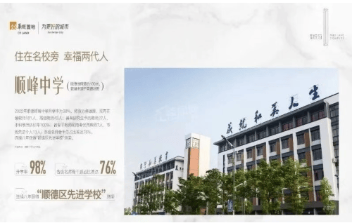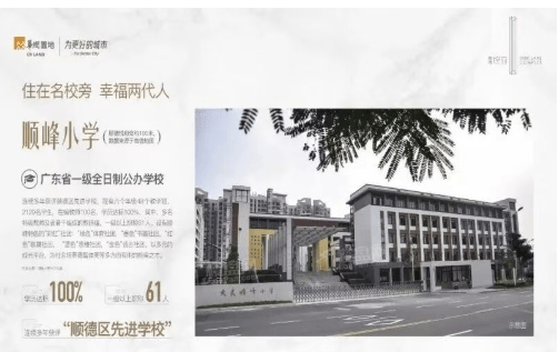 第一,全龄教育闭环。项目配建顺德区机关幼儿园(区属公办),门口就是省一级的顺峰幼儿园、顺峰小学、顺峰初级中学,周边还有大良实验小学、李兆基中学等名校,真正实现“3-18岁目送式教育”。