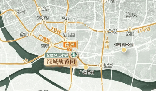 双地铁上盖🚇 广佛线 / 2 号线南洲站,3 站到客村,5 站到珠江新城,7 站到琶洲。地库直通地铁,出入归家风雨无阻,海珠首创。门口道路与海珠湾隧道对接后,15 分钟畅达广州南🚗