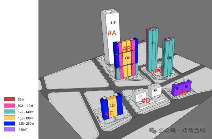 总共规划:AD地块写字楼,BCEF地块大平层公寓