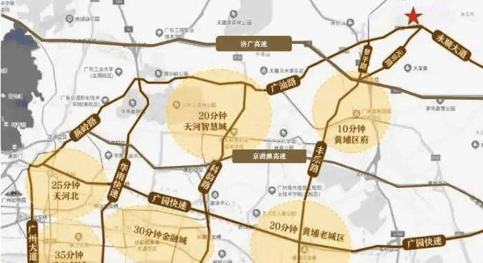 富力新城坐落于黄埔临港经济区与科学城板块的核心交汇处,占据黄埔大道与广园快速之间的“黄金发展线”,享有城市发展红利和完善生活圈。项目紧邻地铁13号线南岗站(直线距离1.2公里),6号线双岗站,30分钟直达珠江新城;自驾10分钟直达鱼珠CBD,20分钟通达天河商圈。跨城通勤方面,通过广深高速、广园快速路,1小时内直达佛山、东莞、深圳核心区。