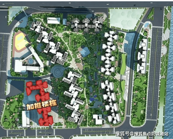 约6万平方米人车分流中心园林,配置架空层、游泳池、球场等功能区域;