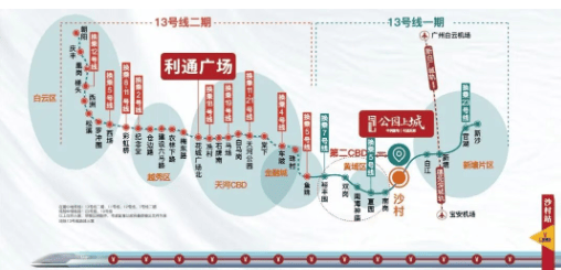 更关键的是,13号线二期预计2025年通车,未来将横跨黄埔、天河、越秀、荔湾、白云五大核心区,无需换乘就能直达花城广场北站。这意味着,住在沙村站,等于提前卡位了通往广州核心CBD的“黄金轨道”。