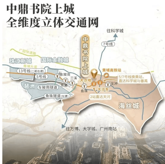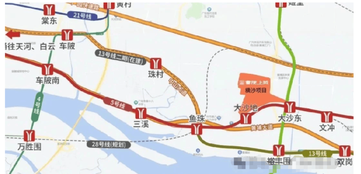 项目距离地铁5号线大沙地站仅需步行约600米,乘坐5号线黄金动脉,两站即达三溪,无换乘直达金融城与珠江新城。同时,北边有广园快速,南边有黄埔大道,两条快速路贯穿广州东西方向,通勤同样便捷。