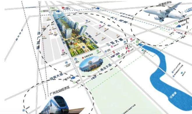 项目所在区域依托白云机场、广州北站两大枢纽设施,形成空铁联运的综合交通体系。机场国际航线覆盖全球主要区域,铁路系统涵盖普铁、高铁、城轨及轻轨,实现18台37线的超强运力;区域内通勤亦十分便捷,通过轨道交通可在约30分钟内抵达广州中心城区,四小时航程可辐射全球主要经济板块。在多重交通体系叠加的基础上,项目企业不仅可实现跨城、跨省乃至国际商务通联,也能在区域商务往来与人才流动方面占据先天优势。