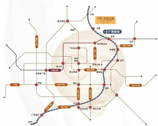 交通方面,目前主要靠自驾:走广州大道北、华南快速,30分钟内可到天河、越秀核心区。而真正的亮点在于在建的广佛环城际线大源站,距离项目约1公里,通车后: