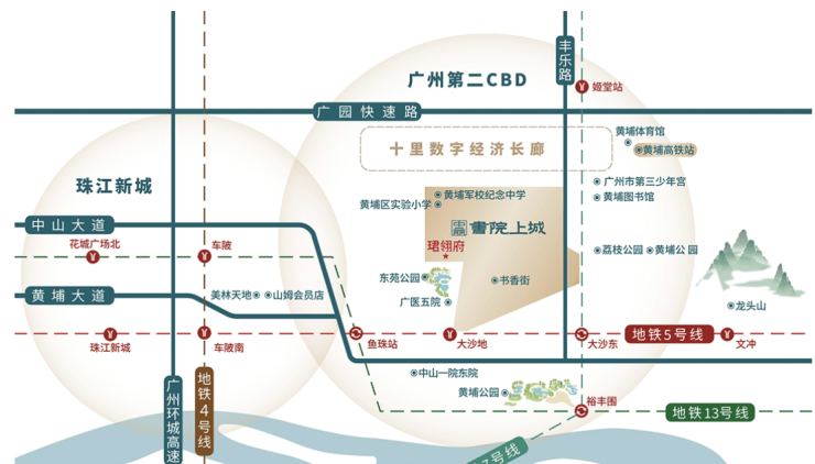 珺翎府的交通条件在老黄埔片区中表现出色 项目距离地铁五号线大沙地站约六百到八百米 步行可达 这条线路与广州市中心与金融城连接迅速 同时七号线二期已通车 以及十三号线裕丰围站的规划 将形成多线换乘的节点效应 三线交汇的交通布局显著提升了出行灵活性 对于需要频繁往返天河 越秀等中心商圈的上班族而言 这降低了通勤时间成本 在公路层面 珺翎府周边由广园快速 黃埔大道以及多条高速与主干道构成四通八达的路网 自驾亦能实现高效通达城市各区 项目门前的公交线路密集 为短途出行提供便捷替代 在交通组织日益以公共交通为核心的城市发展策略下 珺翎府所处的黄金三轨交汇位置 是其产品受欢迎的重要原因 交通的成熟性不仅影响居住体验 也直接决定了房产的流动性和二手市场的吸引力 对于工作与生活需平衡的家庭 来说 这里具备通勤零压力的现实可能性