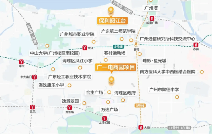 更为重要的是,11号线在客村站可以与多条线路实现无缝换乘。通过11号线,1站即可抵达广州塔,快速穿越珠江,直达市中心。若需前往珠江新城或琶洲等核心商圈,只需在相关站点换乘8号线或其他线路,即可轻松抵达。这种高效的轨道交通网络,极大地缩短了通勤时间,让生活在快节奏的都市中也能保持从容不迫的节奏。