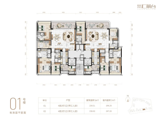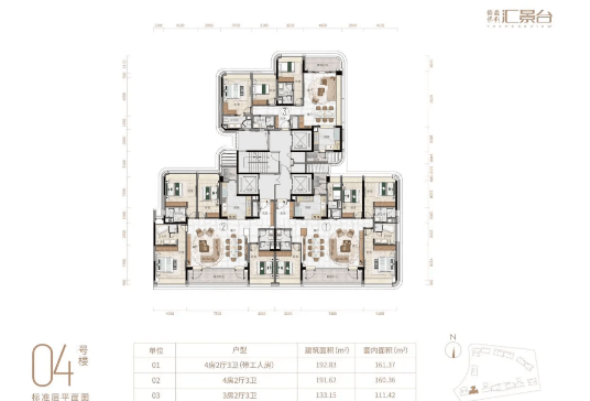 项目由 14 栋 12 层小高层组成,产品涵盖 123-352㎡三至五房,共 8 类户型,实用率约 82-84%,满足从三口之家到多代同堂的改善需求,近期更有加推 240㎡南向大平层新品,主打城央稀缺的大面宽南向户型。