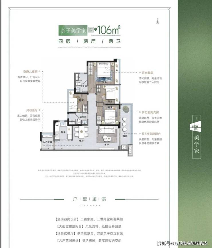户型:77㎡三房两卫(总价136-153万)、88㎡四房两卫(总价157-172万)、106㎡南北对流四房
