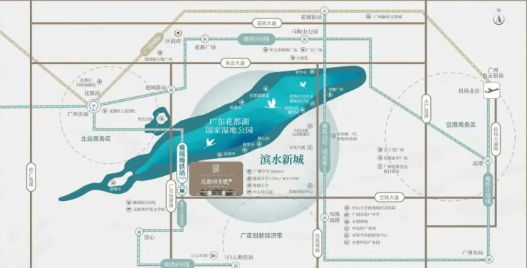 生态资源:项目紧邻花都湖国家湿地公园(占地约2.5平方公里,绿化覆盖率超85%),推窗即见千亩湖景,下楼步行5分钟可达滨水步道。据广州市生态环境局数据,项目周边PM2.5年均浓度较市区低30%,负氧离子含量达2000个/cm³,堪称“城市绿肺”。