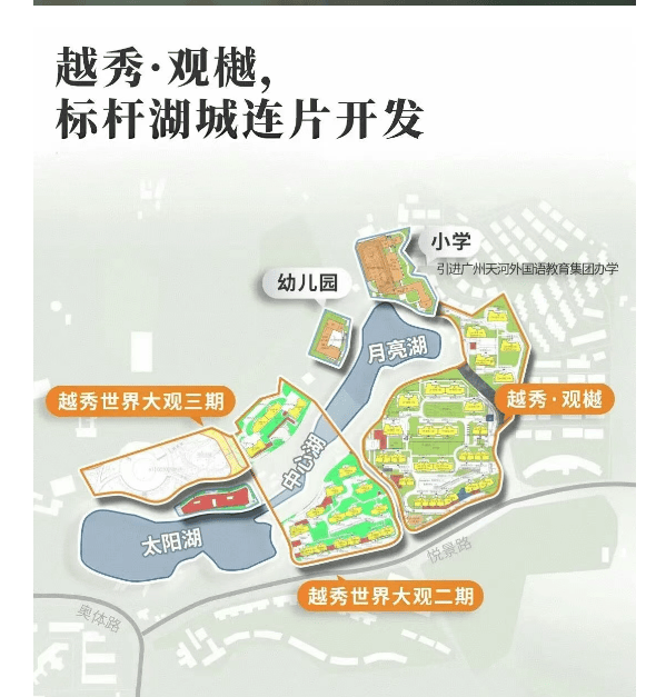 越秀观樾位于广州市天河区世界大观板块,是越秀地产在该区域的重要项目之一。项目占地面积206400平方米,总建筑面积133000平方米,由25栋住宅组成,总户数760户,容积率低至1.91,绿化率达到35%。越秀观樾不仅拥有得天独厚的地理位置,还享有丰富的自然资源,如月亮湖和太阳湖,为住户提供了优美的居住环境。此外,项目内配备了15班幼儿园和24班小学,并引进了广州天河外国语教育集团合作办学,确保教育资源的优质性。