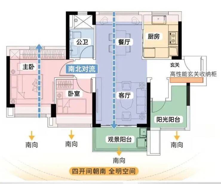 四开间朝南:南北通透,采光极佳,带来舒适的居住体验。