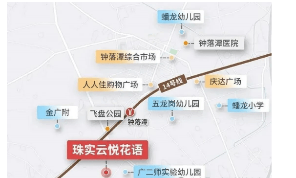 珠实云悦花语地处广州白云区钟落潭板块,虽然距离市中心有一定距离,但凭借其较高的性价比吸引了众多购房者的关注。项目周边交通网络发达,临近地铁14号线钟落潭站,且未来还有多条城轨线路交汇于此,进一步提升了项目的交通便利性。此外,项目内部配套设施完善,拥有约4万平方米的中央水景园林,提供了丰富的社区生活体验。