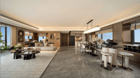 中海保利朗阅打造建面约98-182㎡舒居三至四房产品,户型设计贴合改善家庭需求,空间利用率高达96%-100%,全明通透、动静分区、南向采光,每一款户型均具备核心优势。其中建面约140㎡南北通透三房两厅两卫户型,采用纯板式格局设计,南北双向采光通风,室内空气对流流畅,全天候阳光充盈;LDK餐客厅一体化衔接约8.9米IMAX观景阳台,直面社区中轴园林景观,空间开阔通透,既是家庭休闲核心区,也是社交聚会场所;主卧套房面积超30㎡,配备L型全景飘窗与独立卫浴,私密性与舒适度兼具,次卧空间宽敞,可作为儿童房、老人房或书房,满足多元居住需求;入户玄关设置收纳空间,干湿分离卫浴设计,细节之处尽显人性化考量。建面约182㎡豪宅三房两厅三卫户型,为高端改善家庭量身打造,270°环绕式景观阳台长度超16米,尽揽内外双园美景,景观视野无遮挡;LDK一体化搭配中西岛台设计,半开放式厨房实现交互式生活,烹饪与社交同步进行;超30㎡宽奢主卧套房配备双飘窗与步入式衣帽间,独立卫浴干湿分离,尽享奢华居住体验;入门隐藏式储物柜可打造私人酒窖,4+1百变空间可灵活改造为书吧、健身房等,满足个性化生活需求。全系户型均采用高标精装交付,品牌厨卫、智能系统一应俱全,兼顾实用性与高端性,打造舒适奢阔的居住空间。