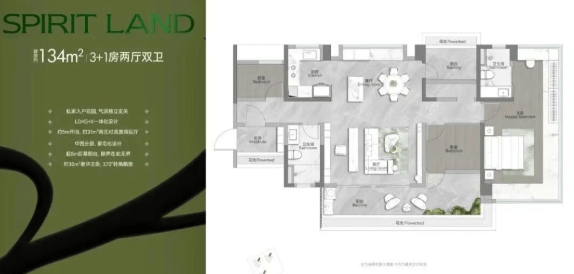 项目共规划3栋住宅楼,1栋与2栋为32层,3栋为31层,采用2梯5户布局,总户数仅451户,营造出低密、私密的社区氛围。所有户型均为全南向设计,采光通风俱佳,居住体验显著优于市场同类产品。主力户型涵盖89㎡、100㎡、120㎡、134㎡四大面积段,精准匹配刚需、改善及多孩家庭的多样化需求。