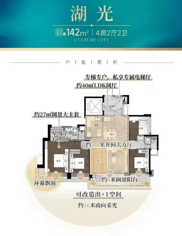 中鼎书院上城·珺翎府推出了多种户型选择,包括建面约107-181平方米的纯改善四房,使用率最低超110%,最高可达120%。其中,107平方米的四房户型拥有12米南向采光面,LDK一体化设计,约6米奢阔阳台,并带有独立入户花园;而181平方米的大平层则堪称“终极改善”范本,拥有约18米的南向IMAX湖景风光,南北对流设计,南向全景阳台面积近16平方米,提供了极致的居住体验。