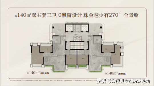 140㎡四居:双套房设计,南北双阳台,得房率86%;