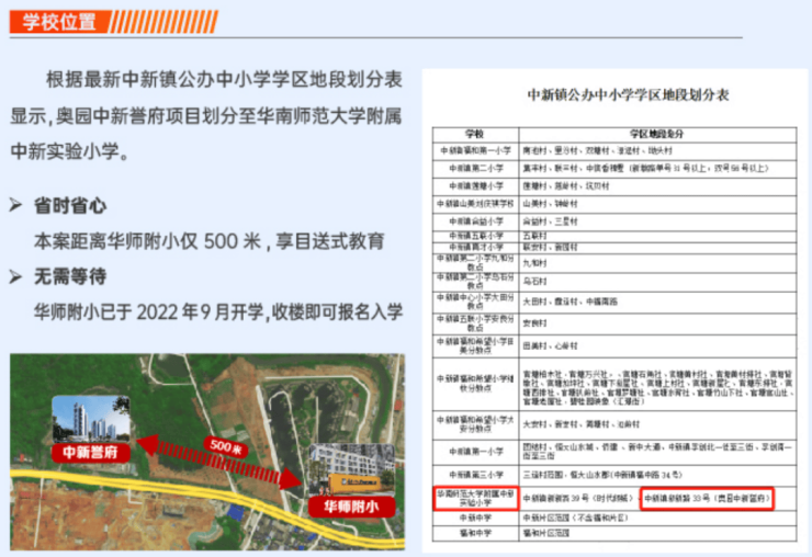 奥园中新誉府的教育配套十分完备。省一级名校华师附小落户中新,于 2022 年 9 月正式开办,且奥园中新誉府为其唯二对口社区之一,为业主子女提供了近距离接受优质教育的机会。华师附小常年位居广州公立学校 TOP1,教学实力雄厚,师资力量卓越,能够让孩子们在名校的熏陶下茁壮成长。除了华师附小,周边还有广东外语外贸大学附属增城实验学校、市一级中新中学、中新镇中心小学、中新第二小学、中新镇幼儿园等众多优质教育资源。从幼儿园到中学,形成了一站式教育体系,满足了不同年龄段孩子的教育需求。家长无需为孩子的教育问题四处奔波,在家门口就能让孩子享受到优质、全面的教育服务,为孩子的未来发展奠定坚实基础。售楼处 24 小时电话 400 - 0688 - 602(售楼部认证),预约专属顾问一对一服务,尊享内部折扣!
