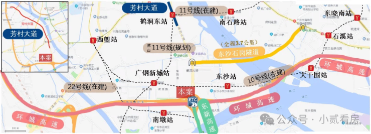 此外,项目周边的广州地铁11号线串联荔湾、海珠、天河、越秀四区;更是毗邻湾区超级地铁22号线——贯穿广州南站与白云机场等重大枢纽,纵横市芯,构建便捷生活圈。