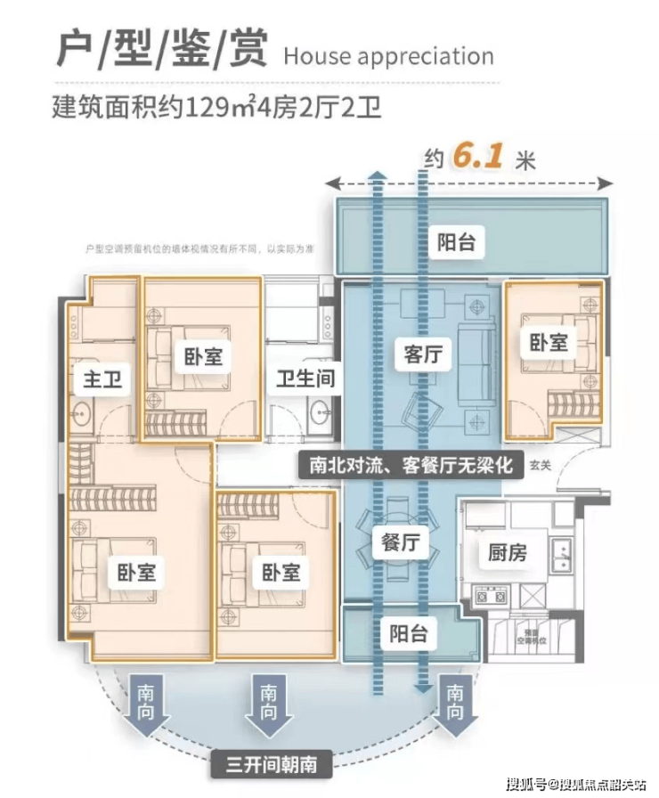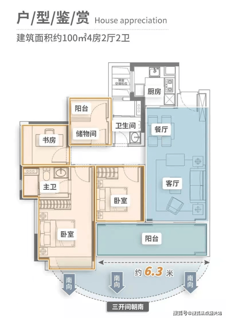 103㎡户型:超6米宽景阳台+3.2米主卧开间,实测采光时长超6小时/日。