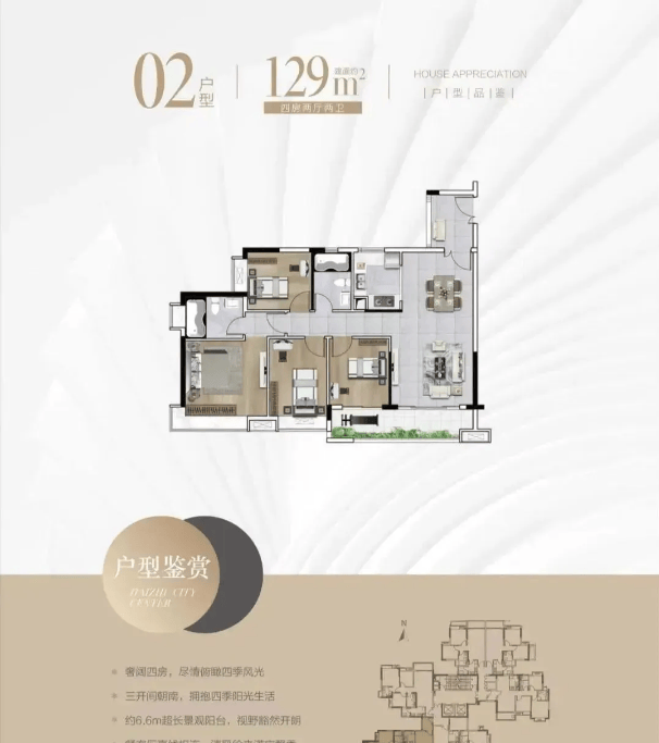所有户型均延续了珠江实业的精工品质,空间浪费极少。结合35%的高绿化率和宽楼间距,采光通风更佳。无论是自住还是投资,129㎡户型都具有极高的性价比。