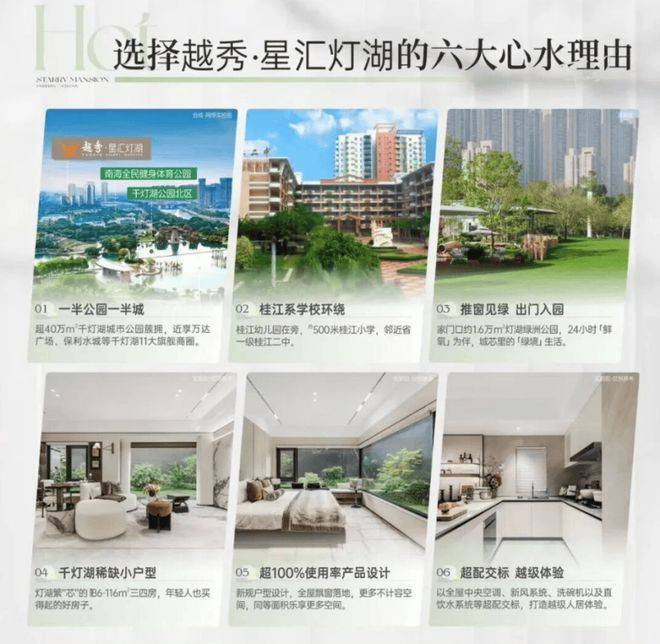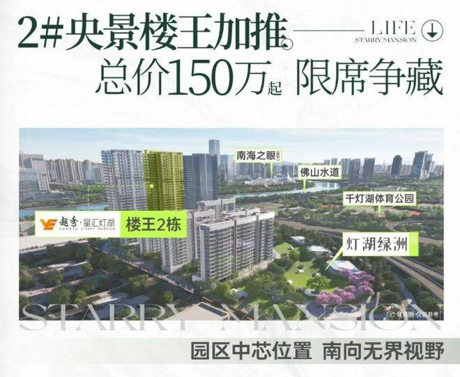 庭群体,项目均可提供理想的居住选择。以“一半公园一半城”的生活理念,越秀星汇灯湖正在重新定义都市宜居新标杆,成为佛山千灯湖片区置业者心中的首选之地。