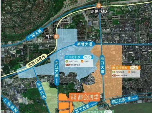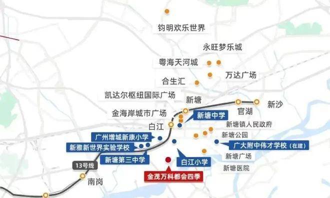 金茂万科·都会四季位于新塘东江新城规划范围内,交通体系兼顾自驾及轨道交通。项目距离13号线白江站约2公里,社区配有业主楼巴接驳及公共交通连接,满足日常出行需求。通过13号线可直达广州核心区域,包括金融城、天河公园、珠江新城、越秀及白云区朝阳片区,实现多节点高效通勤。