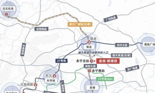 项目在交通方面展现出巨大的发展潜力。增天高速预计 2025 年底通车,届时自驾仅需 30 分钟就能直达天河珠江新城,大大缩短了与城市核心区域的时空距离,满足居民日常通勤、商务出行以及休闲娱乐的需求。同时,永宁北站的新白广城际正在建设中,建成后 1 站可达黄埔 / 新塘 TOD,3 站即可通往东莞 / 深圳,还能快速接驳白云机场。这不仅加强了区域之间的联系,拓展了居民的生活与工作半径,也提升了项目的区域价值,使其在大湾区的交通网络中占据重要位置,为居民的跨城出行、商务活动和旅游提供了便捷条件。