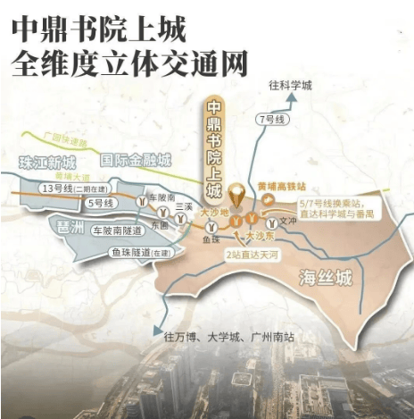 中鼎书院上城·珺翎府距离地铁5号线大沙地站仅约600米,步行即可轻松到达。通过5号线,可以直达金融城与珠江新城,方便快捷。此外,北边有广园快速,南边有黄埔大道,两条快速路贯穿广州东西,进一步提升了通勤便利性。