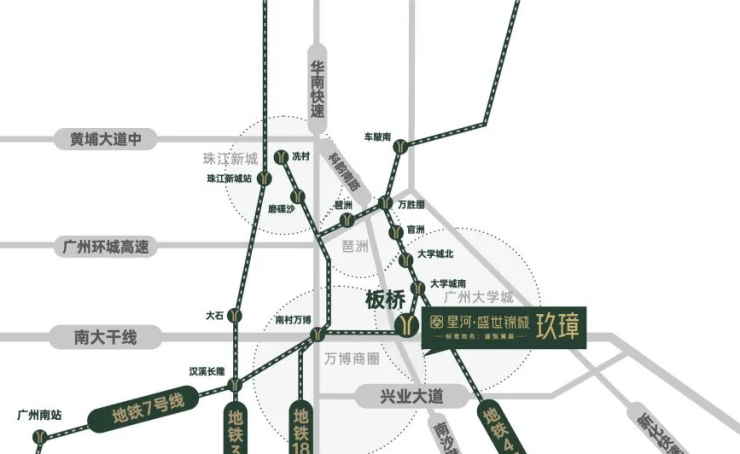 🚇地铁通勤高效,主城无缝衔接!项目三期玖璋组团距离7号线板桥站约700米,步行10分钟内即可抵达,对于上班族来说路程刚刚好,不用忍受长途步行的疲惫。从这里出发,2站就能直达万博核心商圈,5站抵达琶洲CBD,轻松实现0换乘直达工作核心区;通过7号线还能无缝衔接3号线、18号线等多条地铁线路,快速通达珠江新城、金融城等主城核心区域,日常通勤高效又省心。