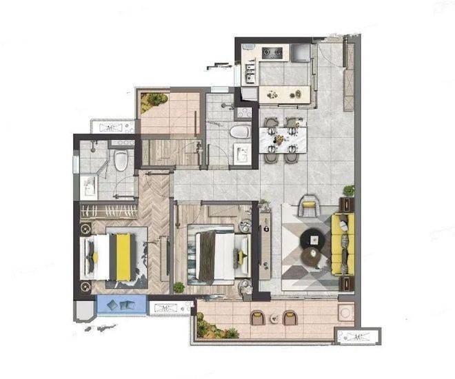 95 平三房户型:这个户型布局精巧,空间利用合理。客厅与餐厅相连,形成宽敞的活动空间,无论是家庭聚会还是日常休闲都绰绰有余。三个卧室分布在户型的不同区域,保证了居住的私密性。其中主卧配备独立卫生间,提升了居住的舒适度。同时,阳台的设计让室内采光充足,还可饱览窗外美景。