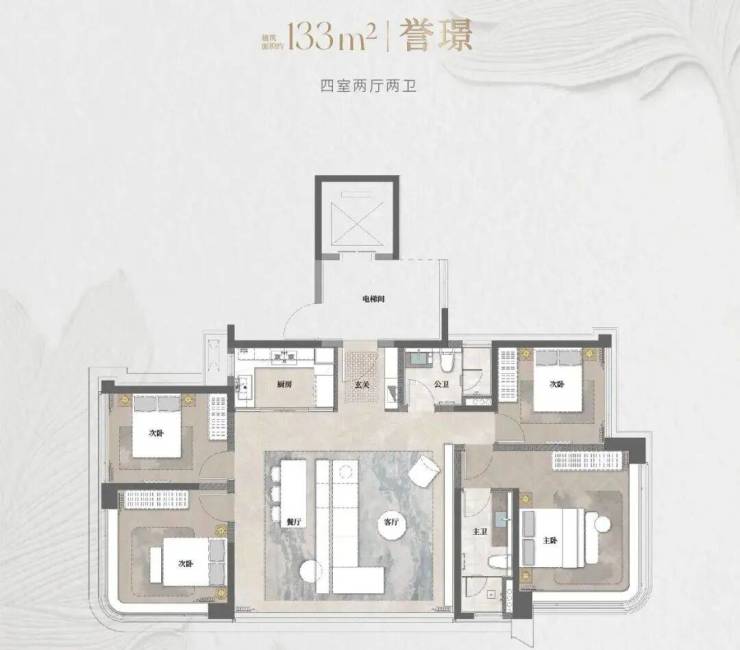建面约133㎡【誉璟】户型:独梯独户(全南沙独一份!),纯南向单边户,约6.8米超阔观景台。