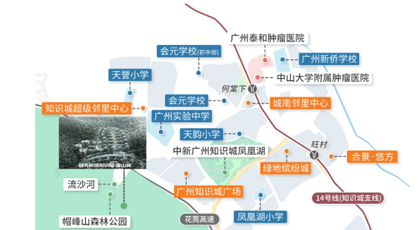 学校方面:教育配套是每个家庭选择居所时考虑的关键因素之一。越秀联投知识城·居山涧所在区域内有多所学校,包括凤凰湖小学、天誉小学、华师附中本部等知名学府,为孩子们提供了优质的教育资源。这些学校的设立,不仅满足了业主子女的基础教育需求,也为他们的未来发展奠定了坚实的基础。