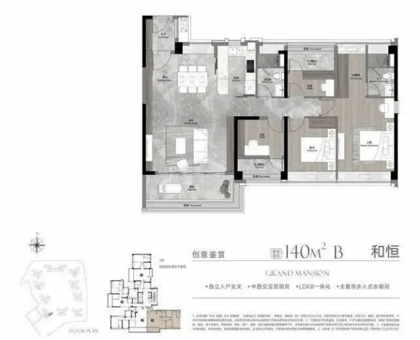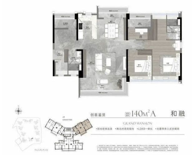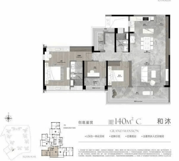 特别值得一提的是建面约180平方米的户型,南向开间宽敞,实现了4.5面的南向面宽,增强了室内的采光通风效果。层高升级至3.1米,并采用LDKB一体化设计,增加了空间的通透感。主卧采用了“小家化设计”,可承载更多的活动场景,方便布置化妆间、游戏空间、阅读角等功能区。