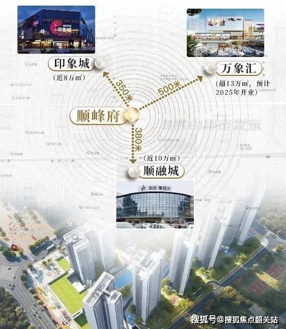 商业:250米内聚集顺融城(10万㎡)、印象城(8万㎡)、万象汇(13万㎡,2025年开业);