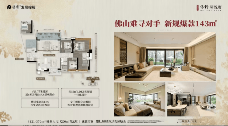 如果说地段是骨架,那户型就是灵魂。保利珺悦府作为北滘少有的新规产品,最大亮点在于接近100%的得房率——这在当前普遍“公摊高”的市场中堪称降维打击。主力在售建面约121㎡四房,采用罕见的“四开间朝南”布局,客厅开间达4.2米,主卧配备270°转角飘窗,采光与视野俱佳,轻松容纳三代同堂。而约143㎡奢阔四房更是惊艳:从玄关到阳台形成五开间南向观景长廊,客厅阳台长达6米,直面一线高尔夫景观;主卧面积超30㎡,内置独立衣帽间与环幕飘窗,堪比五星级酒店套房。所有户型均采用LDKB一体化设计,动线流畅,空间可变性强。据2025年克而瑞数据,北滘同类产品平均得房率仅78%,而保利珺悦府高出近22个百分点,相当于多送一间房,性价比不言而喻。