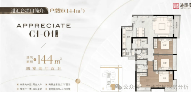 瞰江景观:越秀区唯一瞰江新盘,距珠江200米,90%户型拥有东南向江景视野。