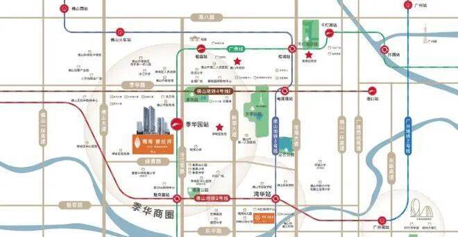 粤海壹桂府的地理位置优越,交通便利。项目距离广佛线季华园站仅约200米,坐享2号线、4号线(在建中),2站即可到达祖庙,8站到千灯湖,10站直达广州南站,高效串联佛山各大核心区域以及广州南站,方便居民出行、通勤与商务往来。此外,项目邻近佛山大道、季华五路、汾江路等城市主干道,自驾出行同样便捷。