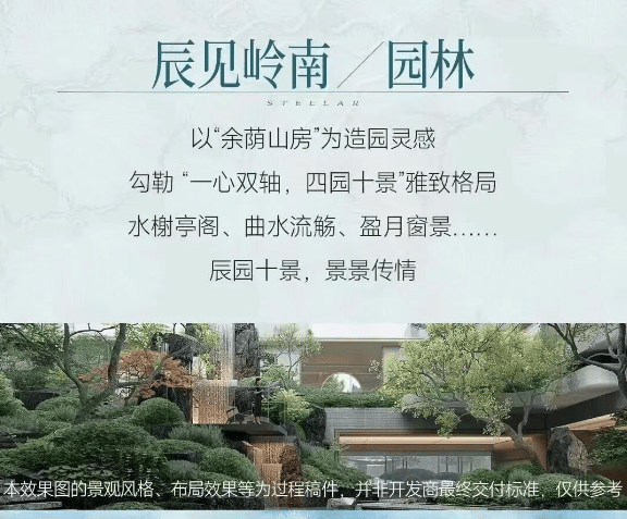 3. 岭南新中式园林,诗意栖居:借鉴余荫山房“藏而不露”的理念,打造“辰园十景”,将岭南元素与湖山景色完美融合,一步一景,诗意盎然,让业主在家门口就能享受“人在画中游”的居住体验。