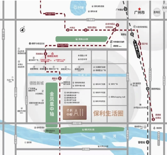 项目择址顺德德胜新城核心腹地,这里是顺德“强中心”战略的主战场,也是城市能级跃升的关键引擎。自2009年佛山新城启动以来,保利便深度参与区域建设,从千灯湖到佛山新城,再到如今的大良德胜,保利始终与政府规划同频共振。德胜新城目前已形成超200万平方米的保利生活圈,涵盖高端住宅、甲级写字楼、星级酒店、大型商业综合体,成为顺德乃至佛山的城市封面。项目所在地块,正是政府重点打造的“金凤凰中轴”核心区,毗邻投资2亿元建设的金凤凰公园,坐拥德胜河滨2公里岸线与2300亩双岛景观,生态与繁华兼得。