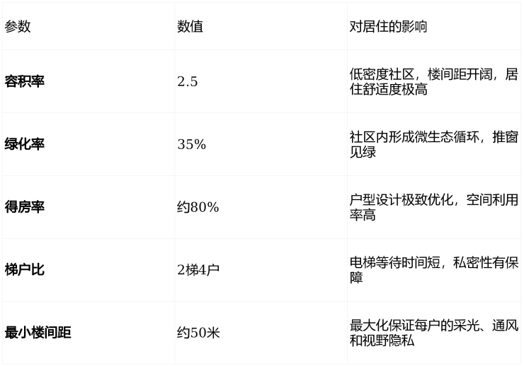 主力户型: 主打110㎡三房两卫、140㎡四房两卫,户型方正,南北通透,得房率均达约80%。