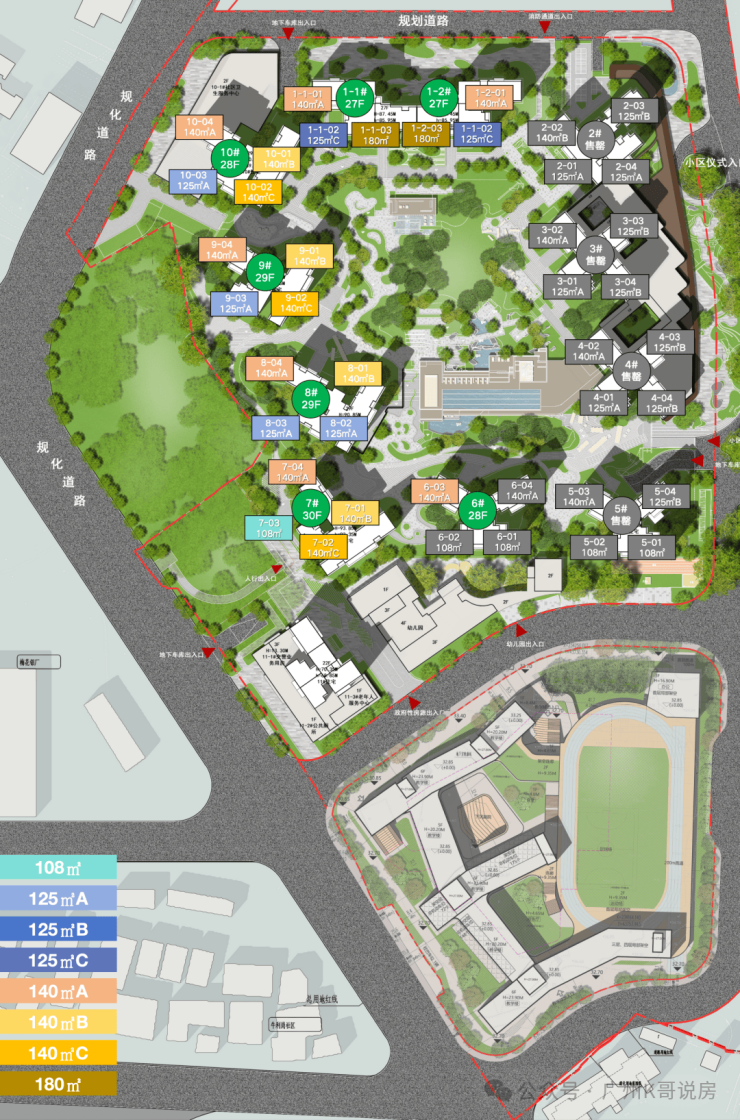 学校师资教育水平介绍:项目内部配建12班幼儿园及一所45班九年一贯制中小学,实行“目送式”教育模式。其中,九年制学校引入广州中学教育集团管理,并接受华阳小学协助指导,师资力量雄厚,教学理念先进。学校将于2026年9月正式开学,届时将为片区输送大量优质生源,形成良好的教育生态。此外,学校还计划设立“钱学森”班,推动“大成智慧教育”,培养具有创新精神和综合素养的未来人才。
