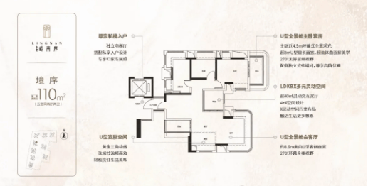 【境序|建面约110㎡全景舱五空间两厅两卫】作为广州首个双U型全景舱户型,客厅与主卧采用全景舱设计,视野开阔无遮挡,可尽览社区景观与江景资源。0飘窗设计进一步拓展室内空间,独立电梯厅与私梯入户设计,彰显业主尊崇身份。
