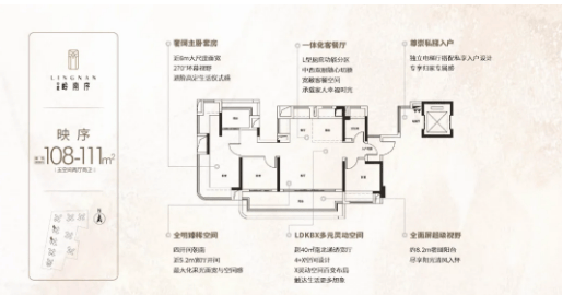 【映序|建面约108-111㎡五空间两厅两卫】户型方正通透,全南向布局保障充足采光,五空间设计满足多人口家庭居住需求。LDKBX灵动空间设计,实现客餐厅、厨房、阳台的无缝衔接,拓展活动空间,主卧配备独立卫浴与衣帽间,提升居住私密性与舒适度。